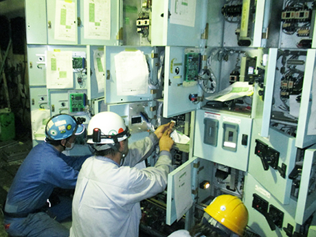- 故障したシステム製品や遮断器は船内にて電気・機械部品の交換や再調整を行い、最新・最適化手法を用いて運用時の機能・性能に回復。緊急時には修理時間の短縮化を図ります。