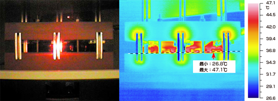 熱画像測定結果 気中遮断器ACBの端子部(裏面側から撮影)