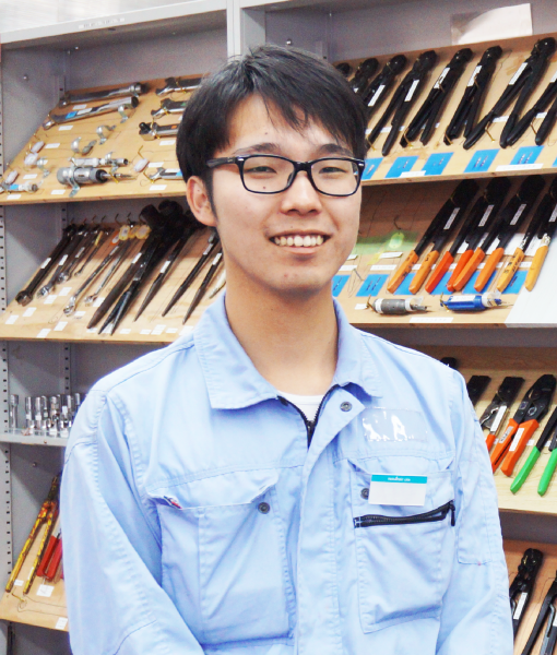 主に船舶で使用する遮断器の陸揚げ点検・整備を担当しています。陸揚げされた遮断器は、まず現状での作動確認及び目視検査で不良箇所の特定を行います。その後、遮断器を整備のために分解してから再度組み立てるのですが、最初は手順を覚えることに苦労しました。そんな私に対し、時に厳しく時に優しく、根気よく教えてくれた先輩方に感謝しています。お客様から預かった遮断器が私の整備により綺麗に生まれ変わる、それが今のやりがいです。